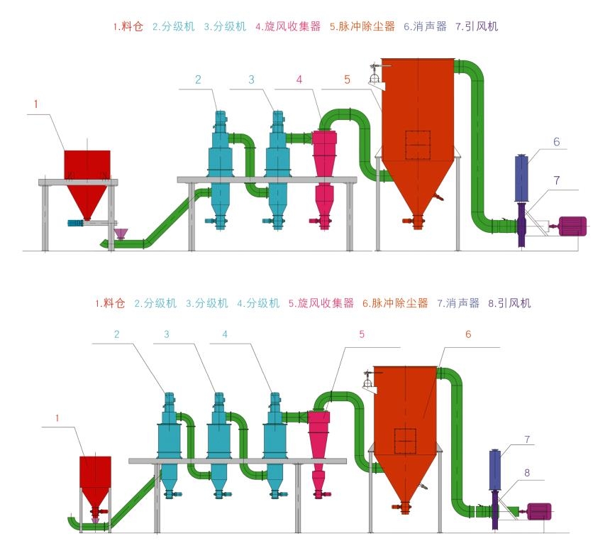 ● 可與球磨機(jī)、振動(dòng)磨、雷蒙磨等粉磨設(shè)備串聯(lián)使用,組成閉路循環(huán);